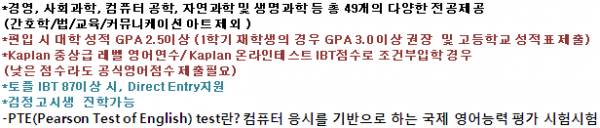 | 입학시기 및 지원마감 | 개강일 1월중순, 5월중순, 8월말