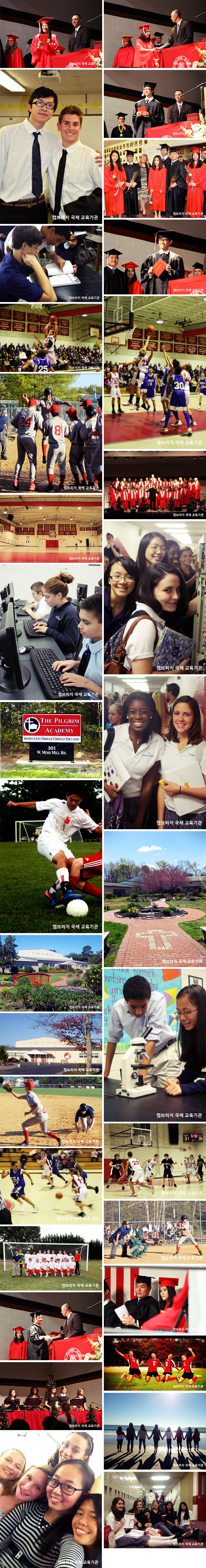 | 학교소개 | The Pilgrim Academy는 Jersey 해안의 한적한 Harbor township에 위치하며, 미국의 최고의 관광지 중 하나인 Atlantic City와 가깝습니다. 주변에 명소가 많은 학교이며 학교는 국제학생들에게 체계적인 ESL 프로그램을 제공합니다. 다양한 음악 프로그램을 통해 학생의 음악적 재능을 살릴 수 있습니다. 그리고 졸업생 95% 이상이 대학을 진학하는 높은 대학진학률을 가진 학교이기도 합니다. |