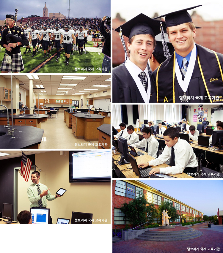 | 학교소개 | Servite High School은 California 중심에 위치하고 있는 Anaheim에 위치해 있습니다. 오렌지 카운티에서 두번째로 큰 도시이며, 스포츠팀과 컨벤션 센터, 놀이공원으로 많이 알려져있는 도시입니다. 디즈니 랜드와 4마일 떨어져있으며 헐리우드와 30분 거리에 위치해 있습니다. 학업 프로그램으로는 15개의 AP 과목을 제공합니다. 학교는 전국적으로 유명한 대학준비 기타 프로그램이 있습니다. 프로그램은 클래식 기타로 이루어져있습니다. 연주를 할 줄 모르는 학생들도 시작할 수 있는데, 높은 수준의 필수적인 훈련 수업도 제공됩니다. 그리고 1:1 iPad 프로그램을 통해 높은 수준의 교육을 위해 학생들에게 필요한 과학 기술의 수요를 준비합니다. 국제 학생들을 위한 국제학생 학업 프로그램을 제공합니다. 수업은 일주일에 4번 진행되며 학생 개인마다 필요한 학업 수업 위주로 진행됩니다. Servite High School의 로보틱 팀은 Friarbots Team 3309이며 세개의 고등학교 학생들이 참여하고 있습니다. Team 3309은 Orange County에서 상위 팀중 한 팀이며 LA에서 준결승전 우승팀이자 결승전 출전자 순위에 랭크된 팀입니다. 그리고 Los Angeles Regional competition에서 주최된 경기에서 prestigious Entrepreneurship Award 상을 받았습니다. Los Angeles Regional competition에서 우리팀을 전문적인 팀이며 고등학생 로보틱팀이라 믿기 어려울 정도라 극찬했습니다. SAT 평균 1654점, 상위 30%는 2022점, 상위 10%는 2136점으로 높은 SAT 점수를 자랑합니다. 98%의 대학진학률을 보이며 졸업생이 진학한 대학은 다음과 같습니다. University of California-Berkeley, University of California-Los Angeles, University of California-Davis, University of California-San Diego, University of California-Santa Barbara, University of California-Irvine, University of San Diego, Loyola Marymount University, University of Arizona, Stanford University, The Ohio State University, Texas A&M University, Boston University, Emory University, University of Pennsylvania, Yale University. |