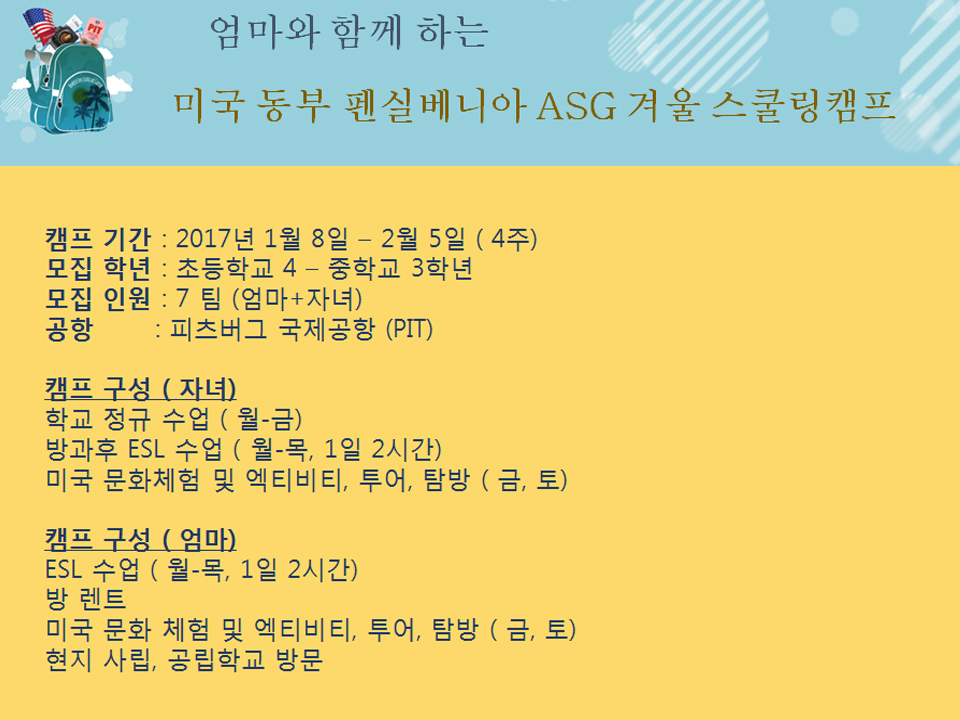 ASG 엄마동반 스쿨링 일정$비용